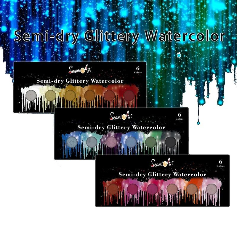 TOP 6 Colors Glittery Solid Watercolor Paint Set Pearlescent Pigment Students Watercolor Paint For Draw